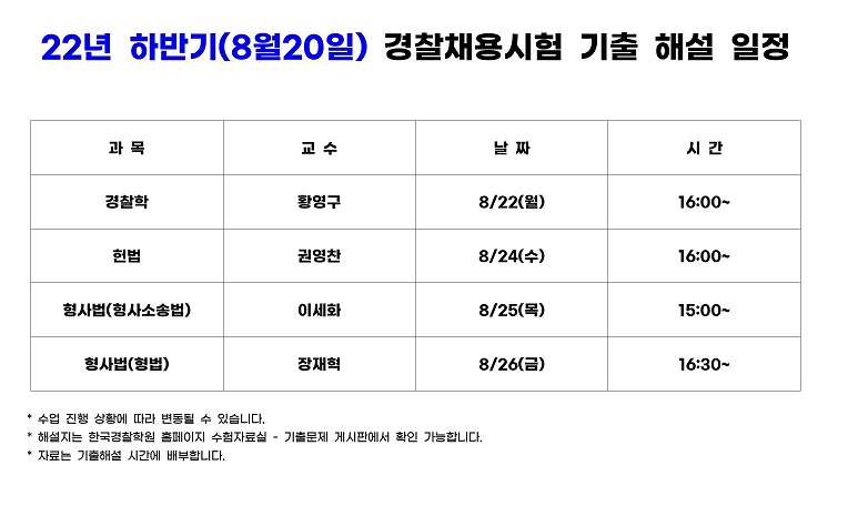 글제목 :      22년 하반기 경찰채용시험 기출 해설 일정 공지