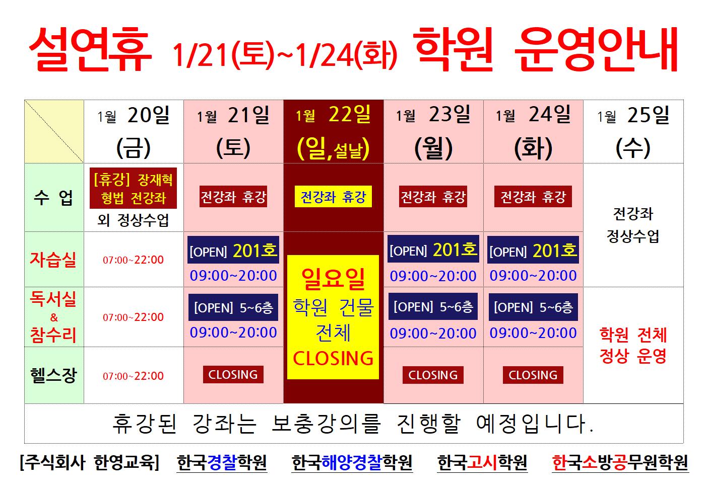 글제목 :      한국경찰학원 설연휴 일정 안내