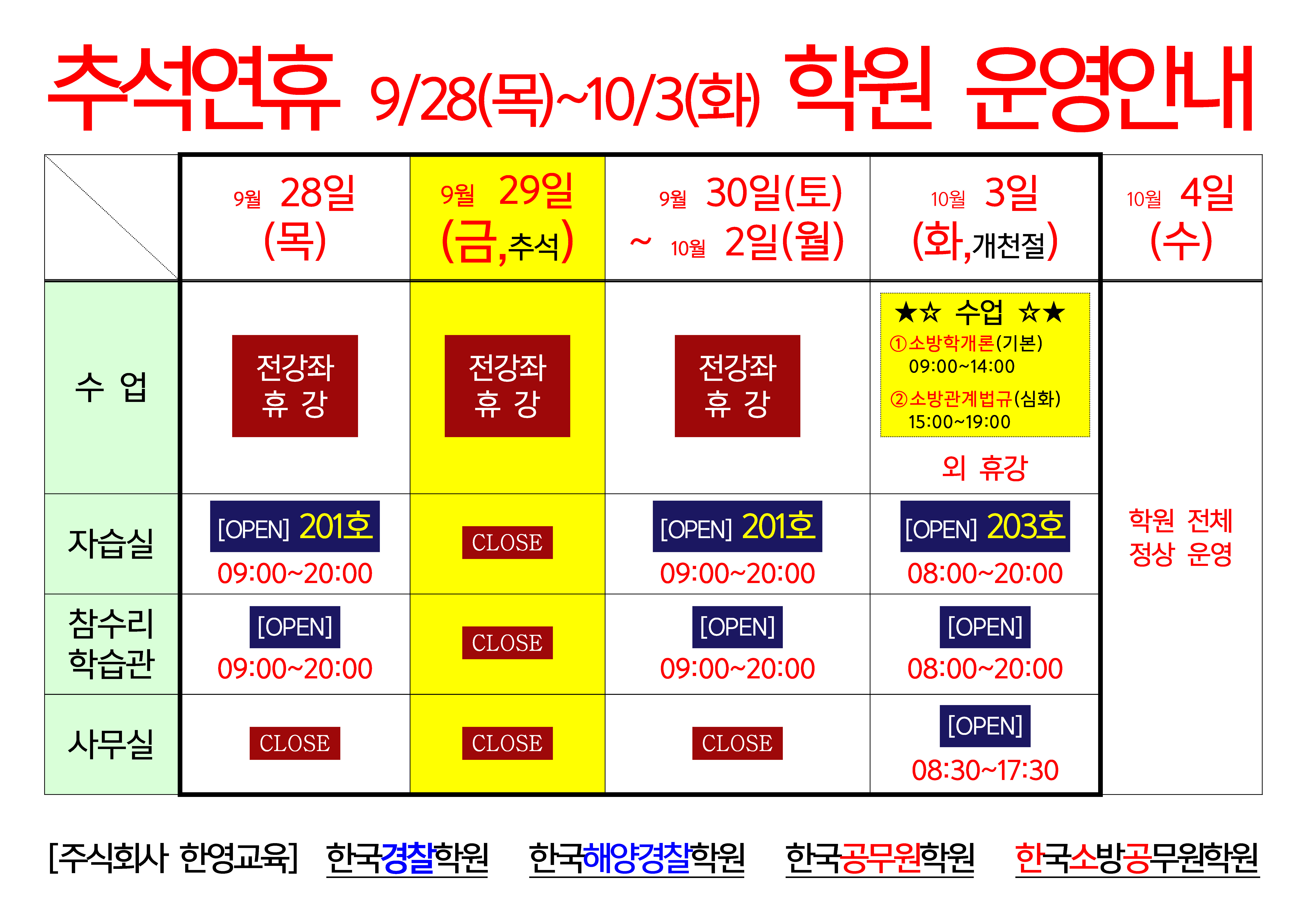 한국경찰학원 추석연휴 일정 안내