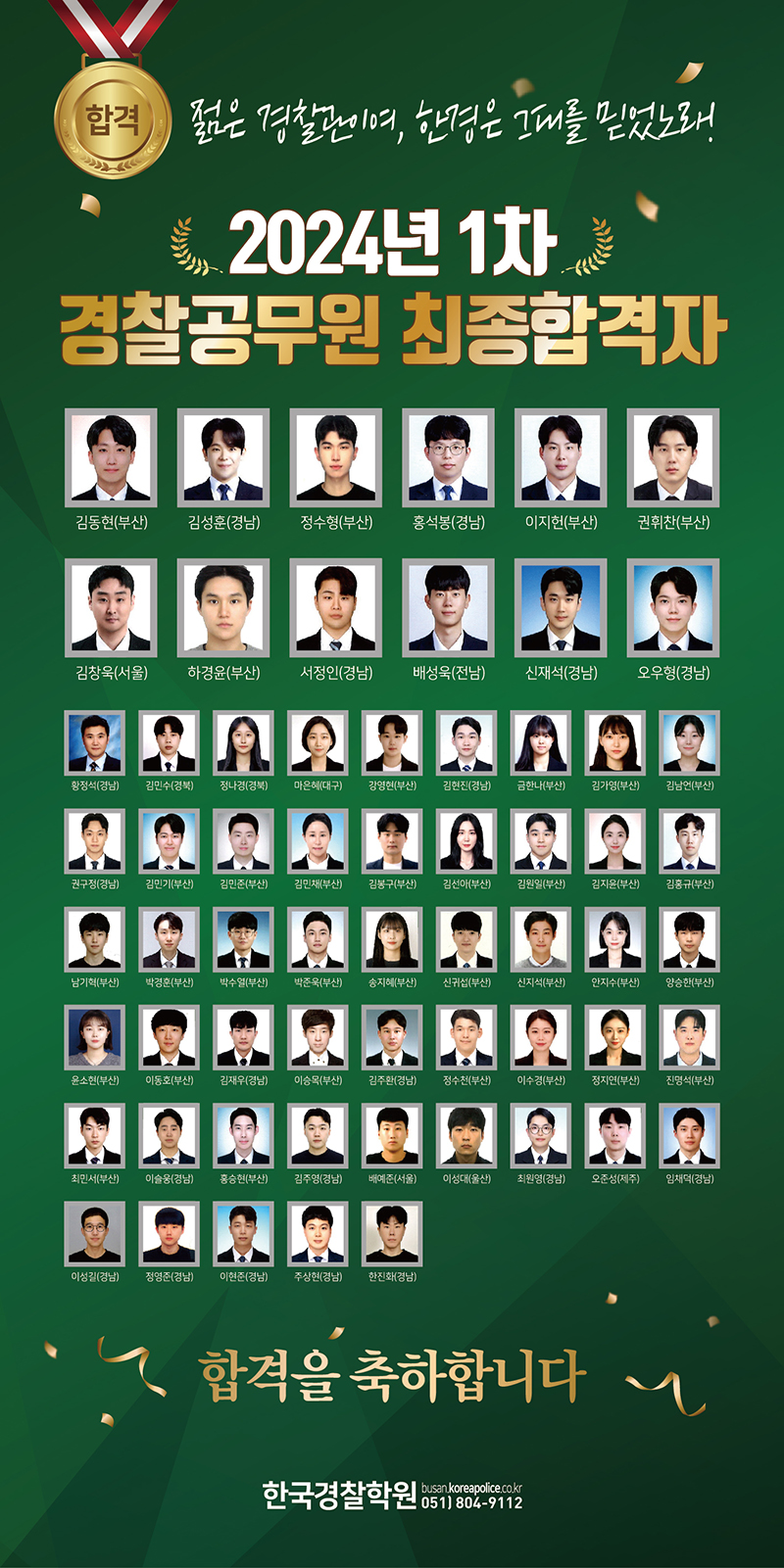 경축) 24년 1차 최종합격! 단기합격은 한국경찰학원이다!! 합격을 축하합니다!! 다음 합격은 여러분입니다!!