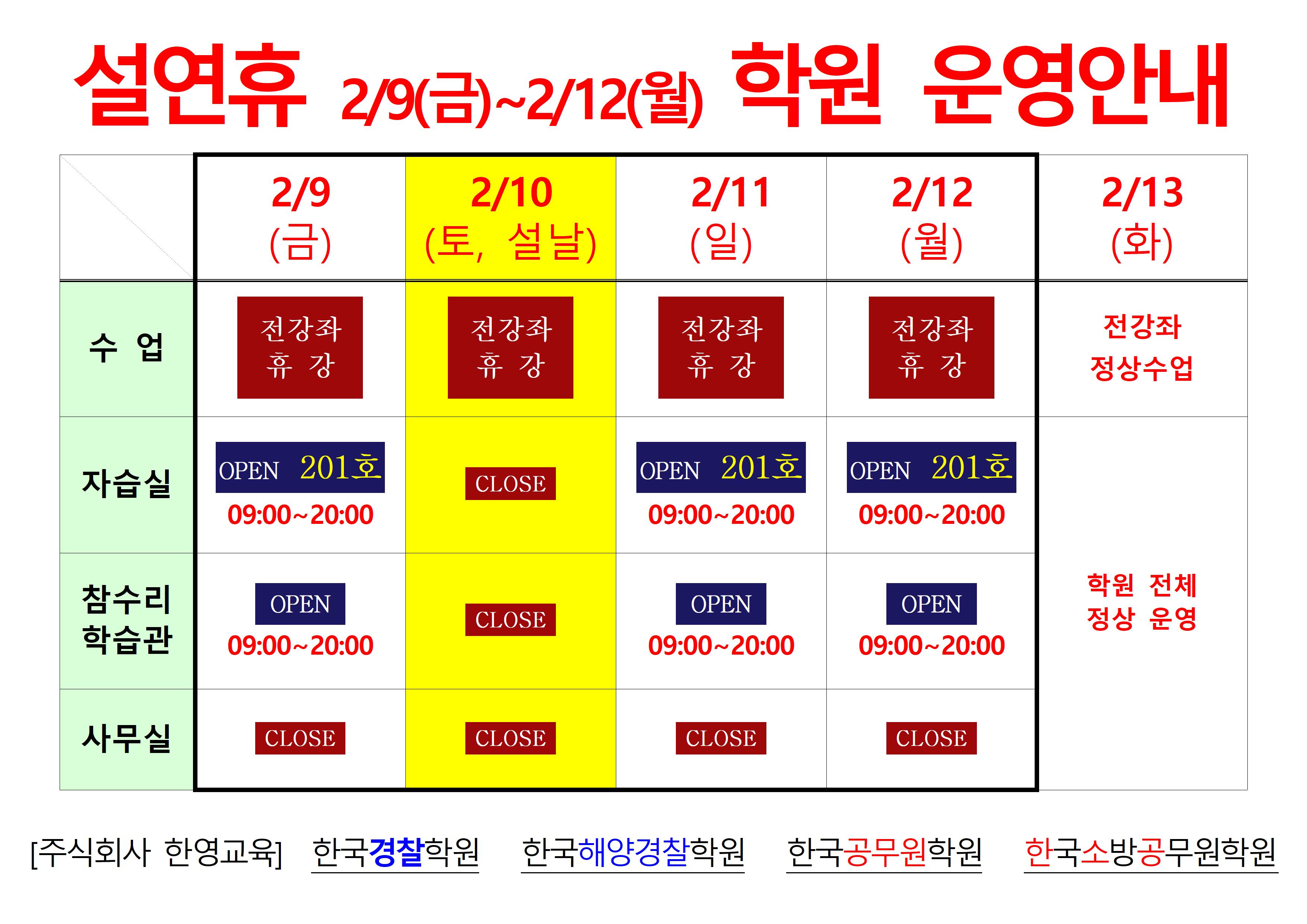 글제목 :      한국경찰학원 설 연휴 일정 안내
