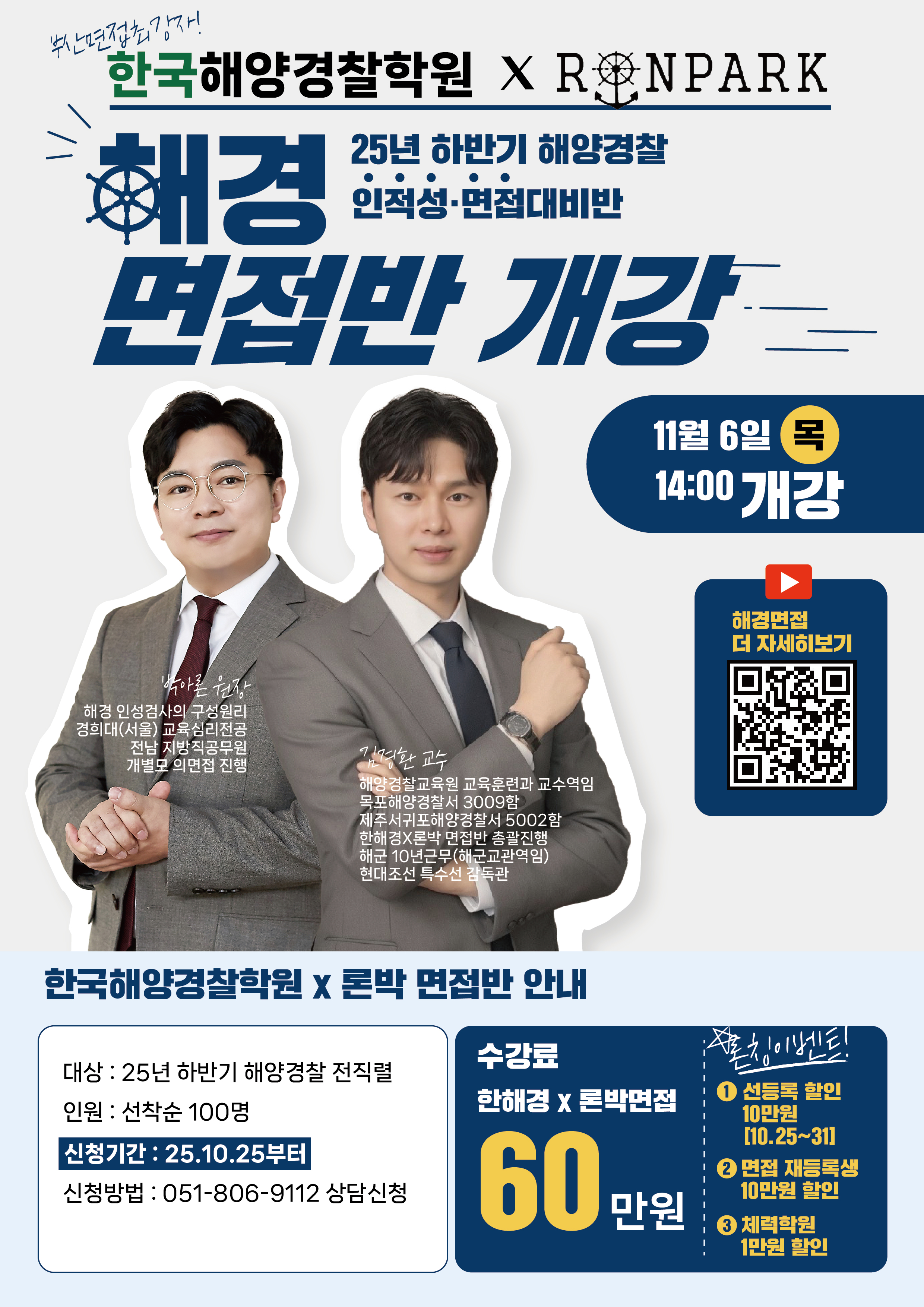 한국해양경찰학원 X 론박스터디 해양경찰면접캠프 개강