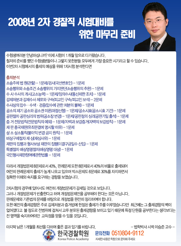 글제목 :      08년 2차 경찰직 시험대비를 위한 마무리준비