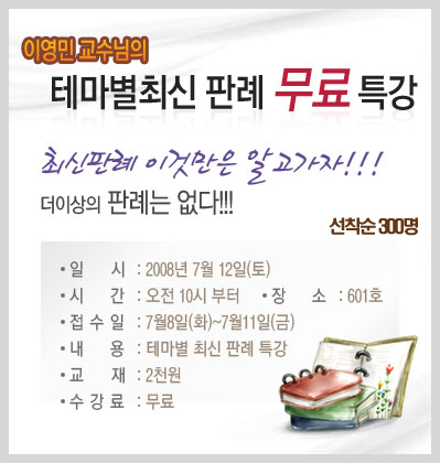 글제목 :      이영민 교수님의 테마별 최신판례 무료특강!!!