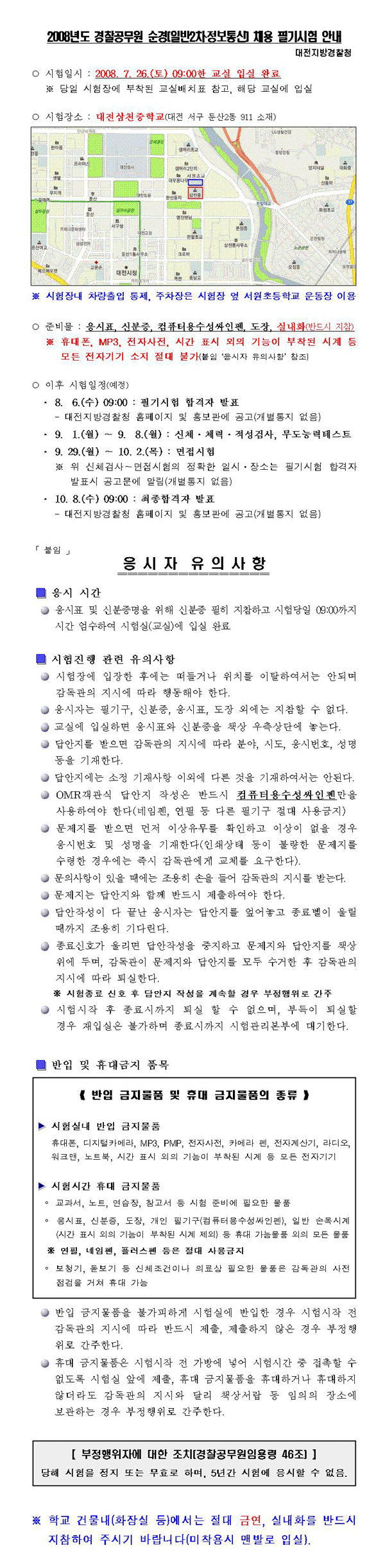 글제목 :      2008년 2차 대전지역 필기시험 장소 안내