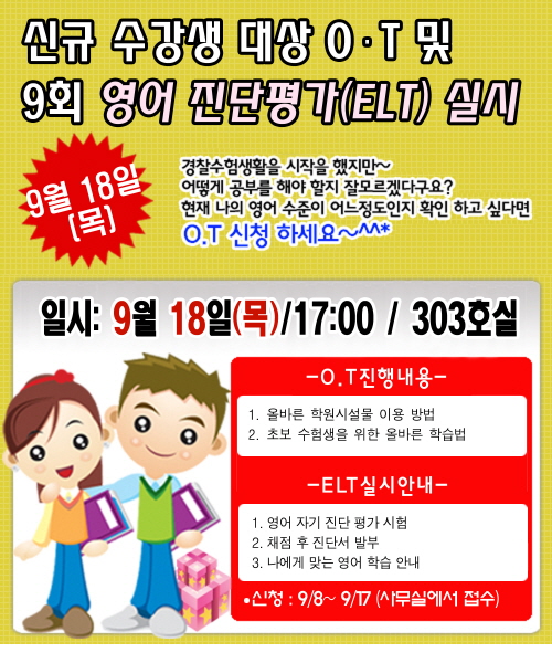 글제목 :      2008년 9회 신규등록생대상 O.T 및 영어 Level Test 안내
