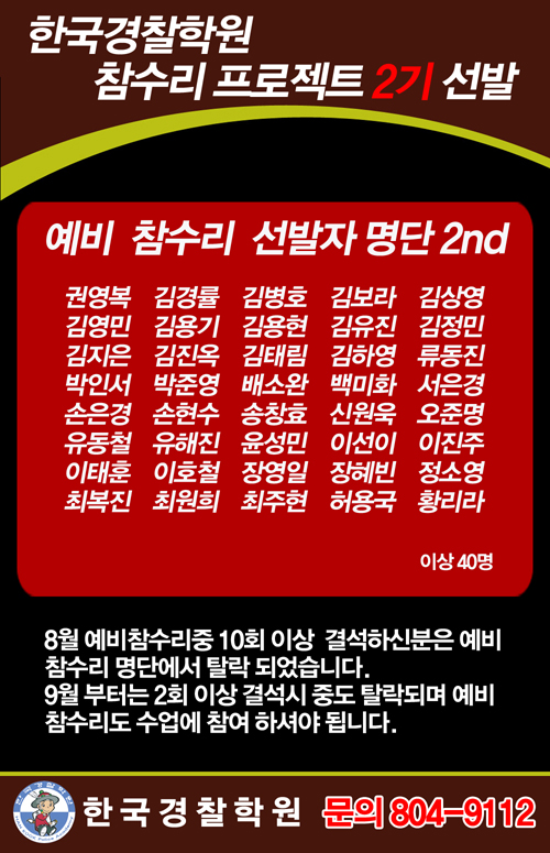 글제목 :      한국경찰학원 예비참수리 2nd 선발자 명단