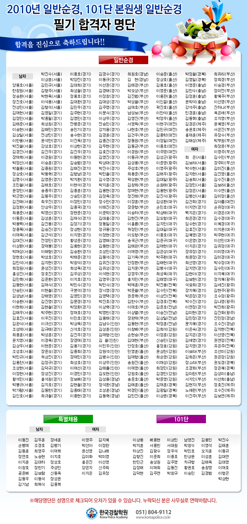 글제목 :      2010년 1차 경찰공무원 필기 본원출신 합격자