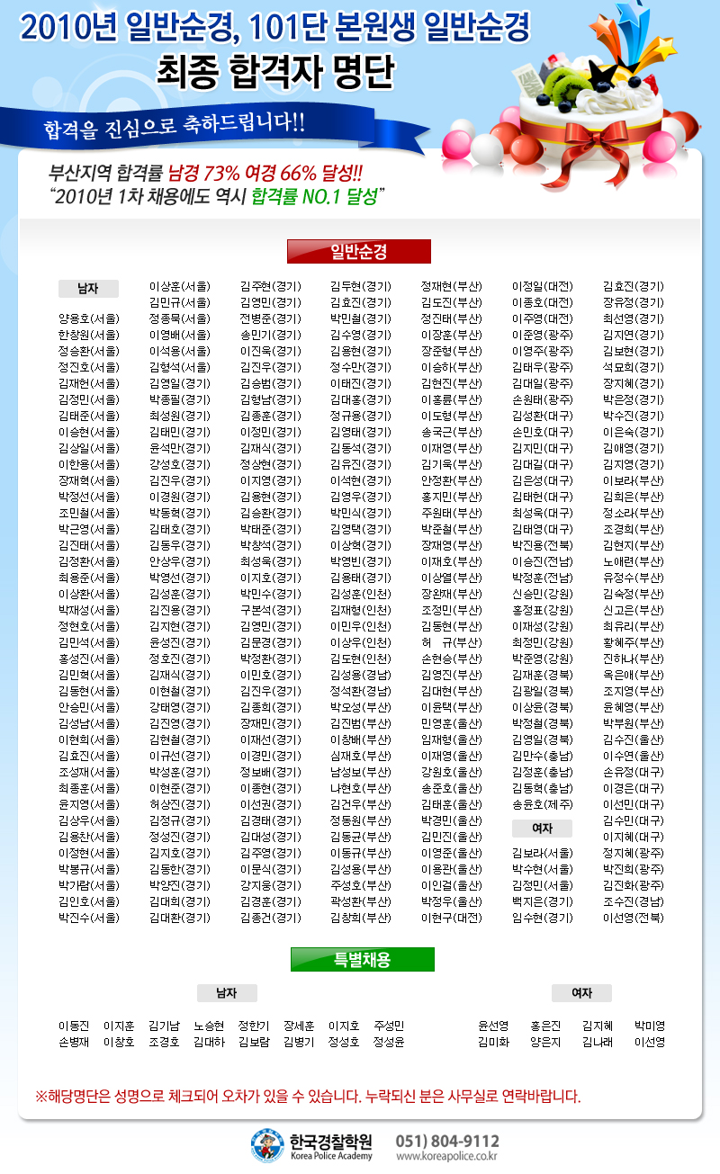 글제목 :      2010년 1차 경찰공무원 최종 본원출신 합격자