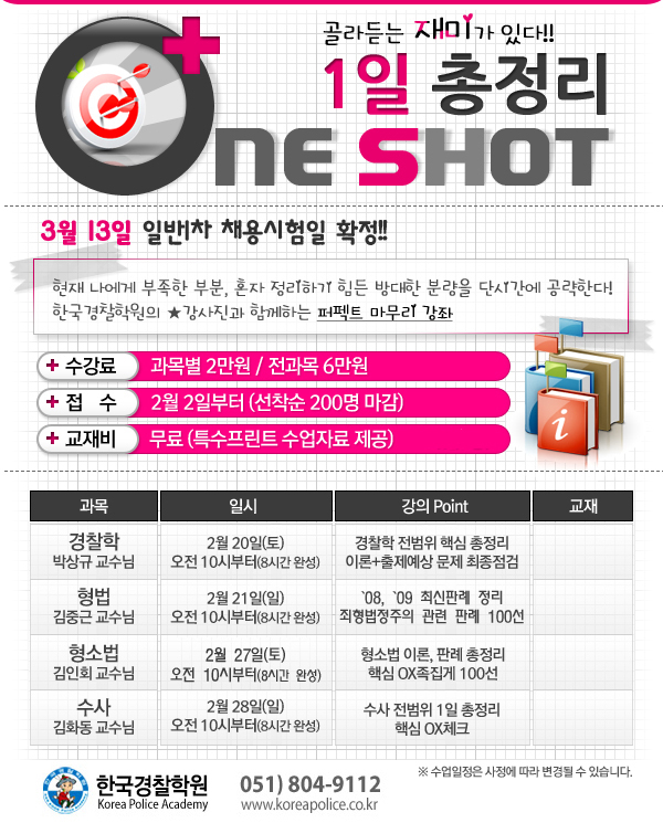 글제목 :      1차 시험대비 원샷 일일 총정리 특강