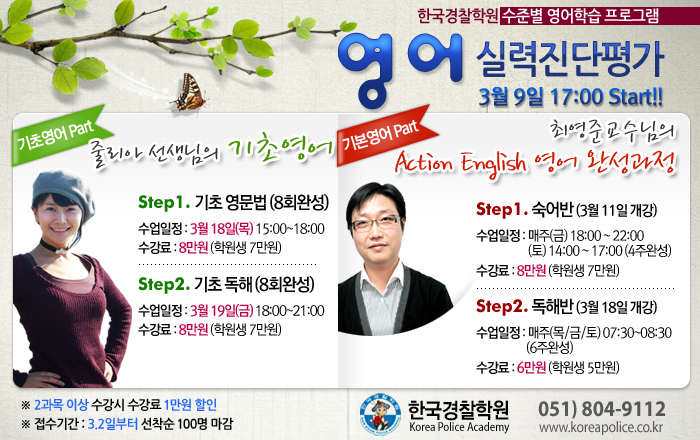 글제목 :      한국경찰학원의 수준별 영어학습프로그램 개강!!