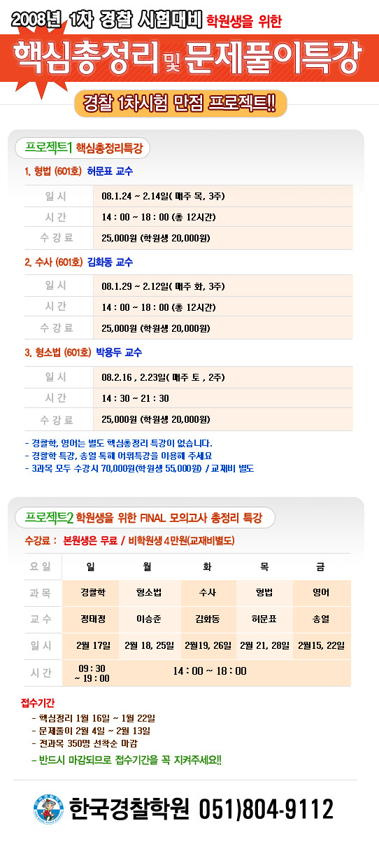 글제목 :      2008년 1차 경찰시험 대비 핵심총정리 및 문제풀이 특강 안내
