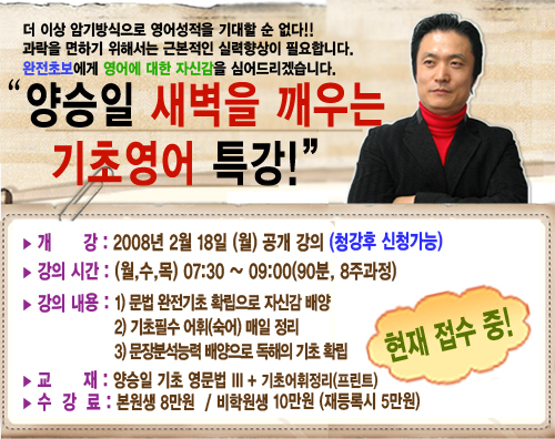 양승일 새벽 기초영어 개강 및 공개강의 안내