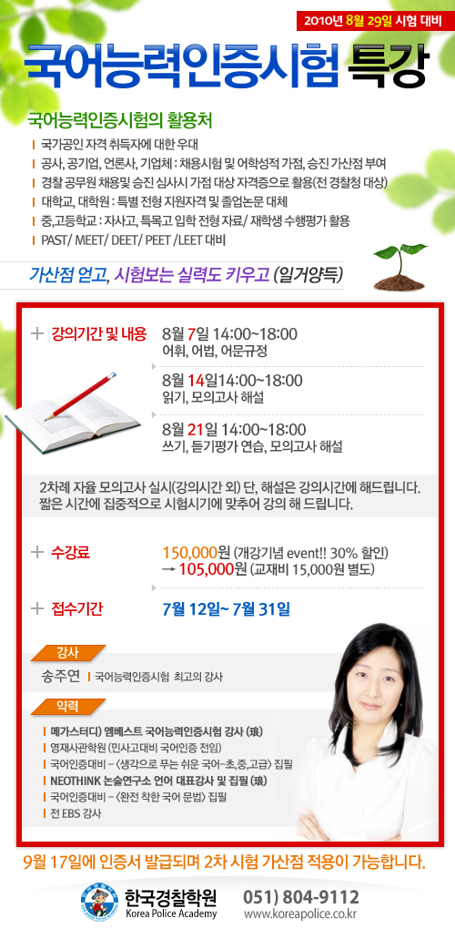 글제목 :      국어능력인증 시험 특강 8/7 일 개강