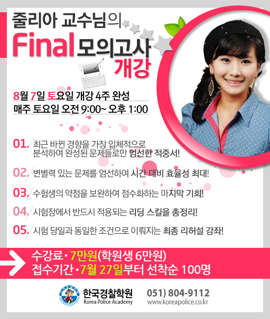 글제목 :      줄리아 교수님의 Final 모의고사반 8/7 토 개강