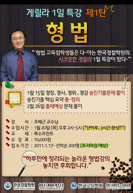 글제목 :      게.릴.라.1.일 특강 제1탄 형법 1/20(목)오후2시