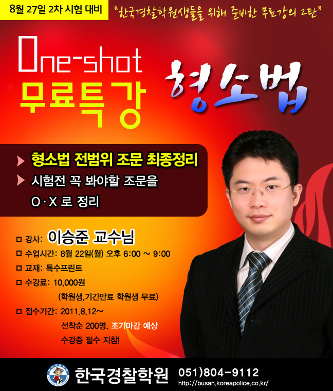 글제목 :      One-shot 형소법 조문 1일 무료특강