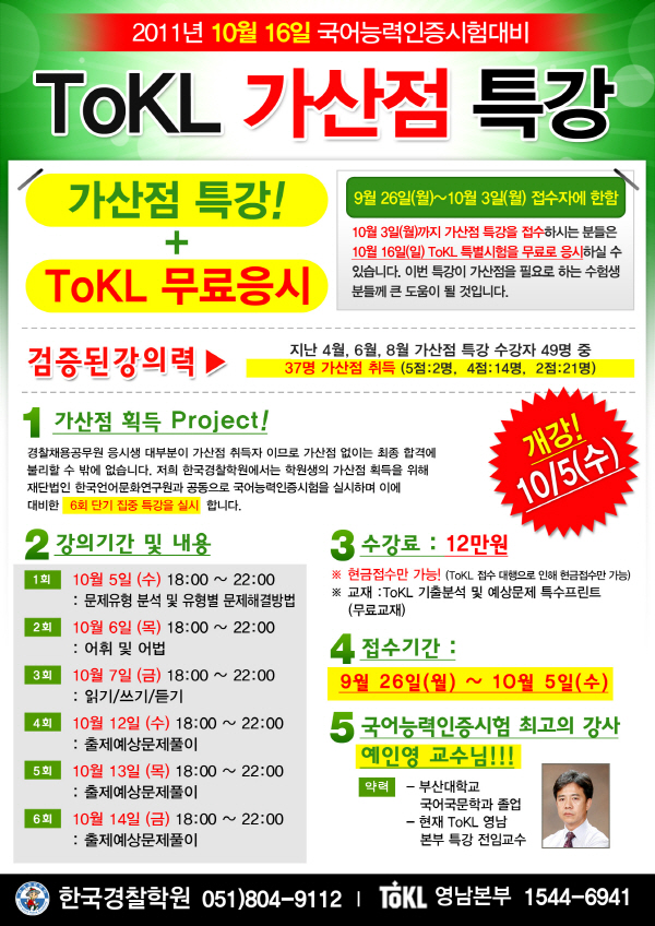 ToKL 가산점 특강 : 10월 5일(수) 18:00 개강!~