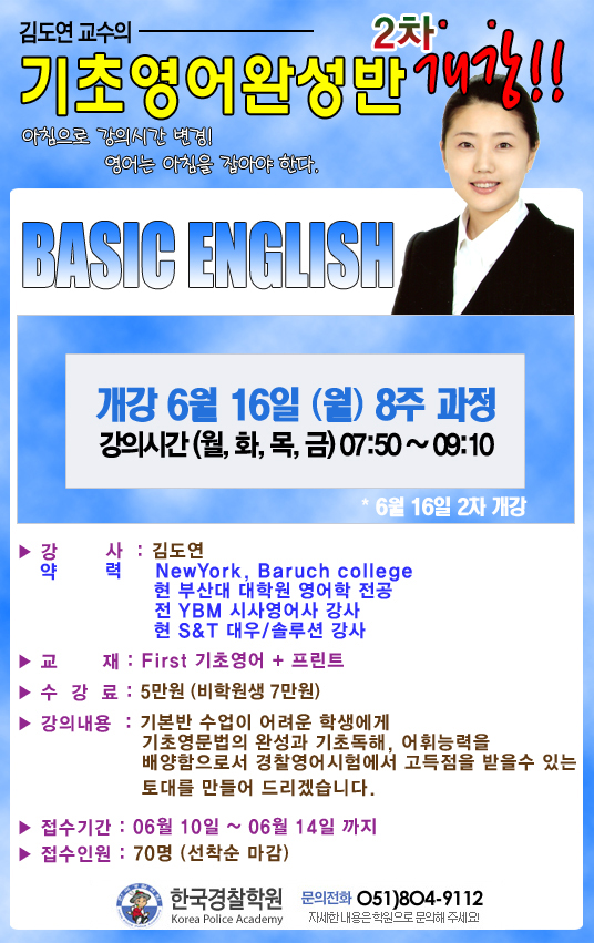 글제목 :      08년 06월 김도연 기초영어 완성반 2차 개강