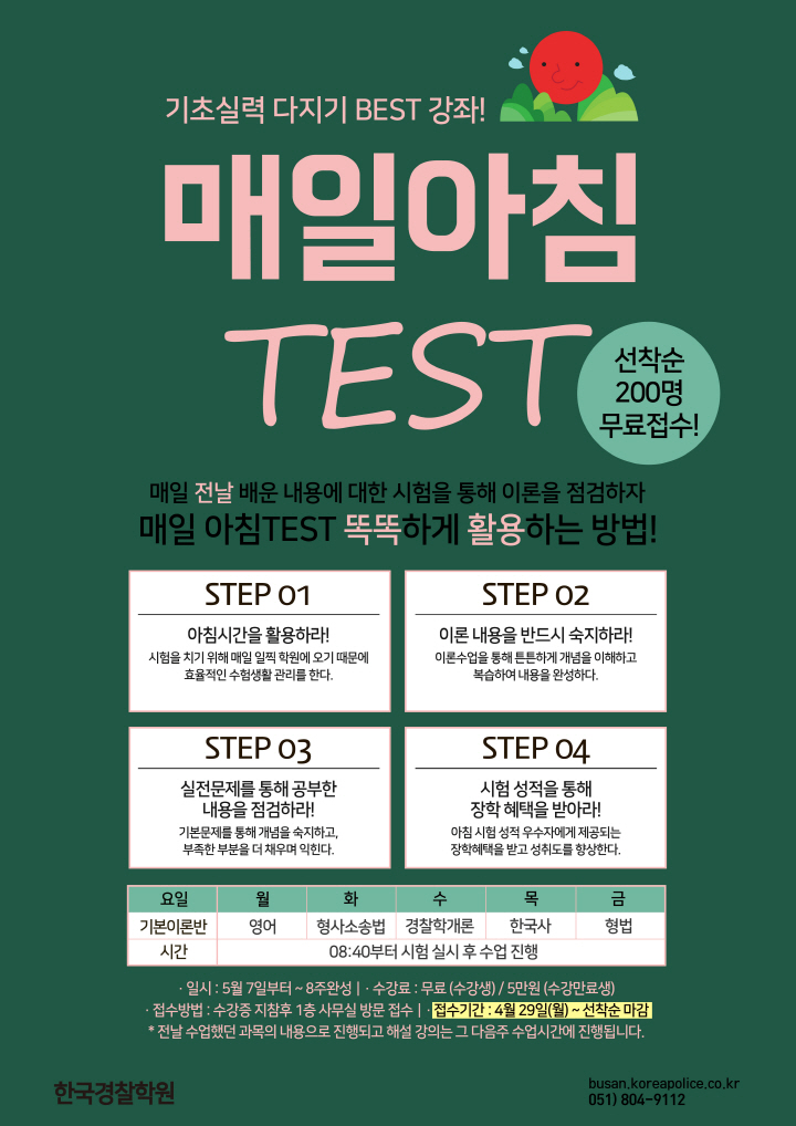 글제목 :      ★5~6월 아침 테스트 접수안내 5월 7일 첫.시.험