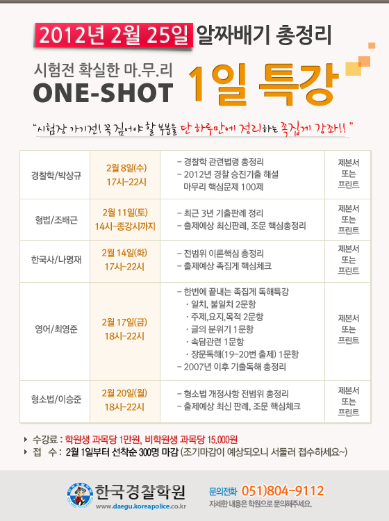 글제목 :      2월 25일시험대비 1일 특강 개강