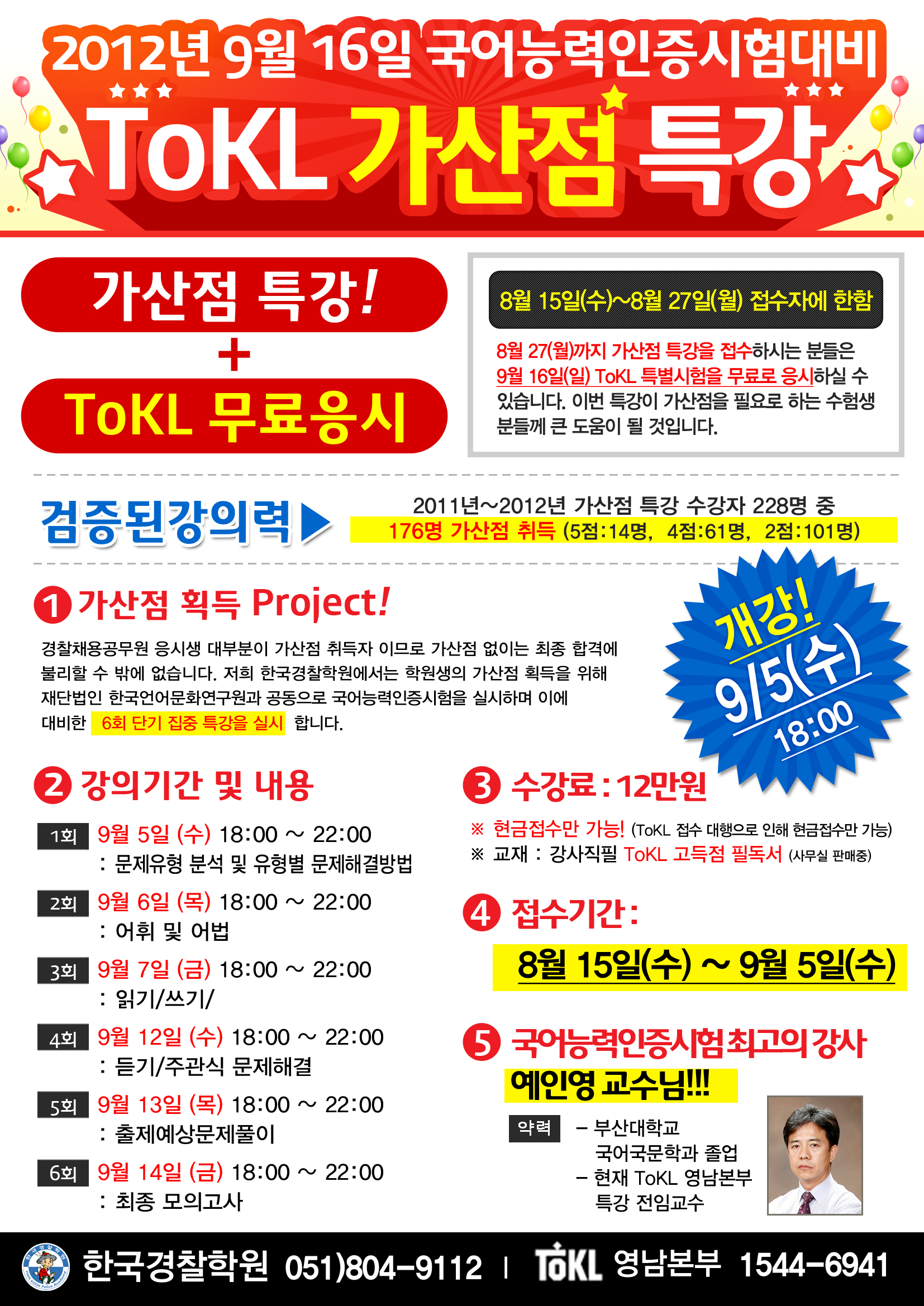 글제목 :      국어능력인증시험(ToKL) 가산점 특강