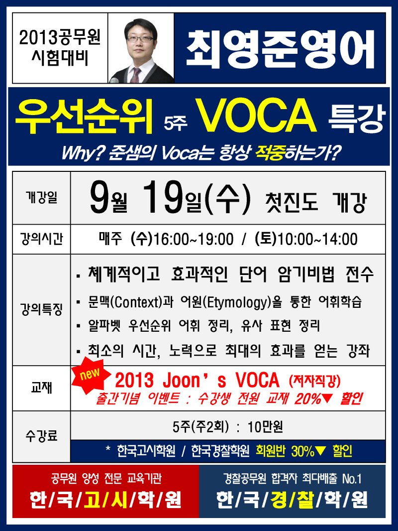글제목 :      최영준 영어 VOCA 특강! (9/19 개강)