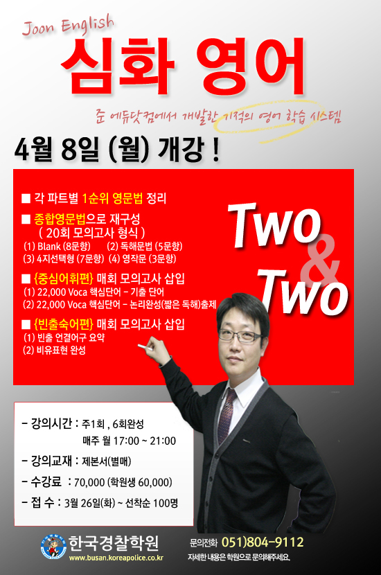글제목 :      [특강] 최영준 교수님의 심화 영어 4/8(월) 개강