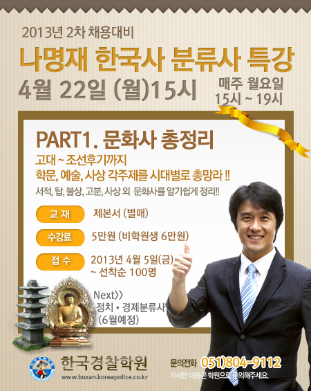글제목 :      [특강] 나명재 한국사 분류사 특강! (4/22 월 개강)