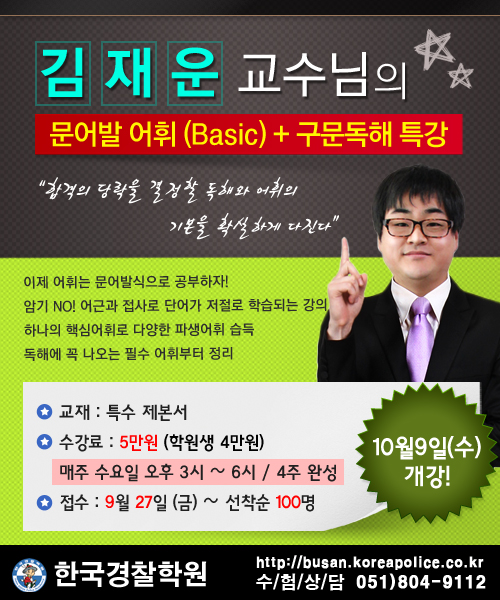 글제목 :      [영어] 김재운T 어휘(Basic) + 구문독해 특강 (10/9개강)