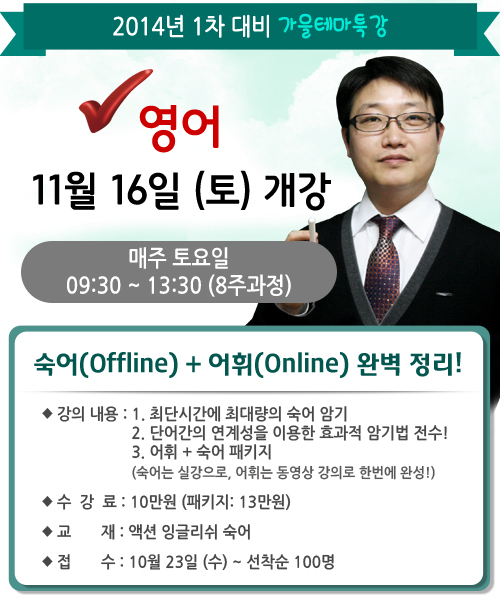 글제목 :      [특강] ★☆ 11월 가을 테마특강 (11/8 개강!) ☆★