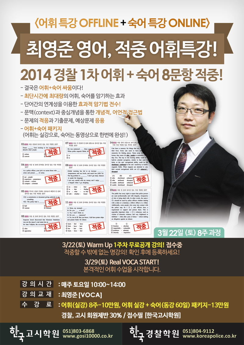 글제목 :      [특강] 최영준T 어휘 + 숙어 3/22(토) 무료공개강의