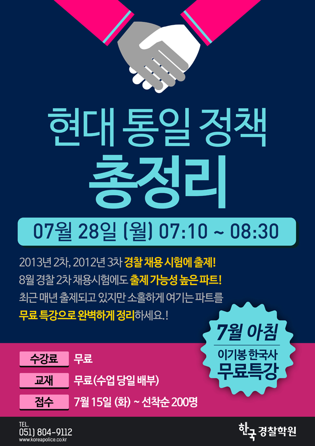 글제목 :      7월 이기봉 한국사 무료특강 (현대 통일 정책 총정리!)