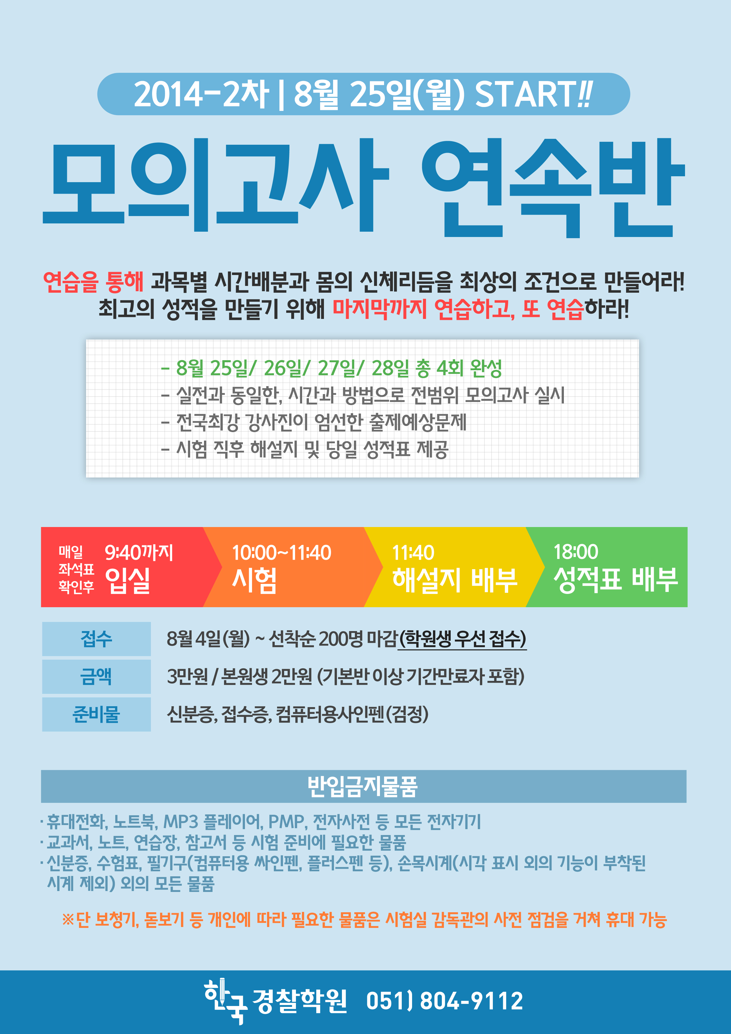 글제목 :      [특강] 2014-2차대비 연속모의고사 특강 8/25 개강!