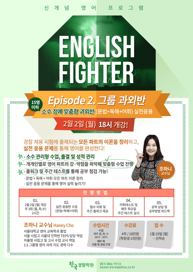 글제목 :      [영어프로그램] 2월 English Fighter ep 1 입문편, ep 2 그룹과외반