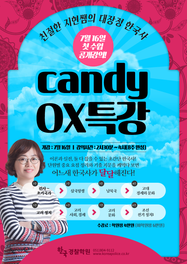 글제목 :      [안내] 7~8월 장지현 한국사 단원별 XO특강 (7/16 개강)