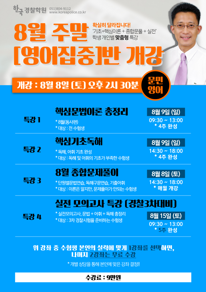 글제목 :      [8월] 문민T 주말 영어 특강 개강! (1+2)