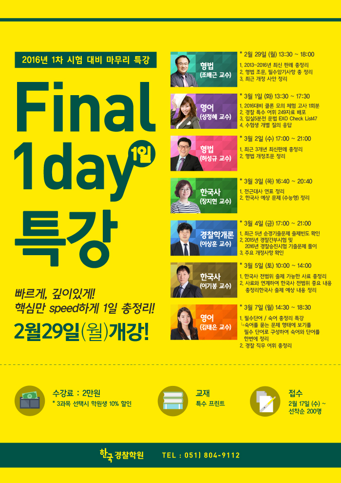[특강] 2016-1차대비 Final 1일 특강 2/29(월) 개강! |