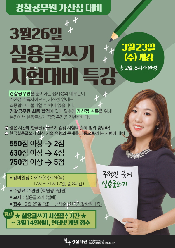 글제목 :      [가산점특강] 실용글쓰기 특강 (2회 / 8시간 완성) 3/23 (수)개강