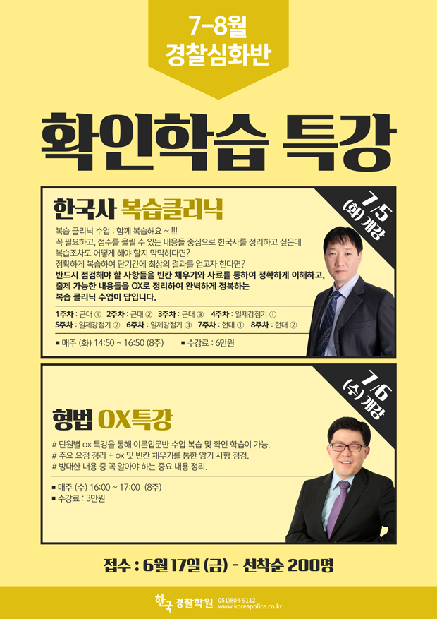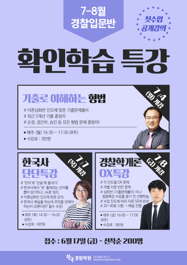 [7-8월] 경찰공무원 확인학습 특강 (입문반, 심화반) |