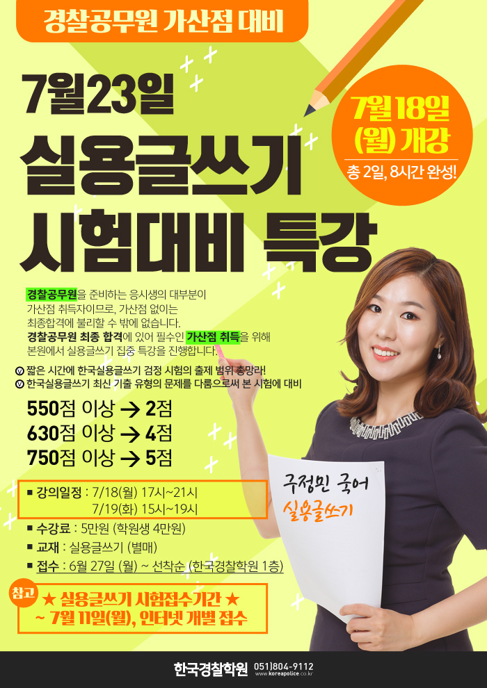 글제목 :      [가산점특강] 실용글쓰기 특강 (2회 / 8시간 완성) 7/18 (월)개강
