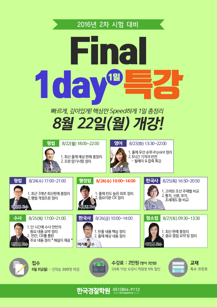 [특강] 2016-2차대비 Final 1일 특강 8/22(월) 개강!