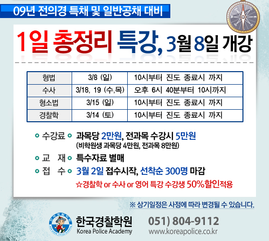 글제목 :      09년 전의경 특채 및 일반공채 대비 1일 총정리 특강개강!