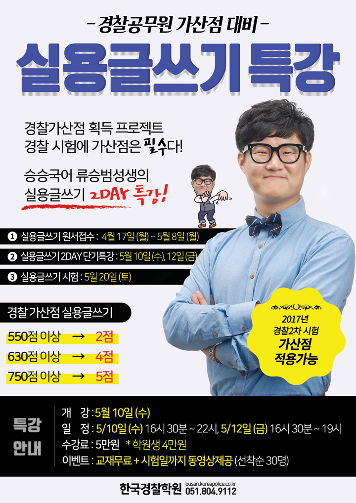 글제목 :      [가산점특강] 실용글쓰기 특강 (2회 / 8시간 완성) 5/10(수)개강