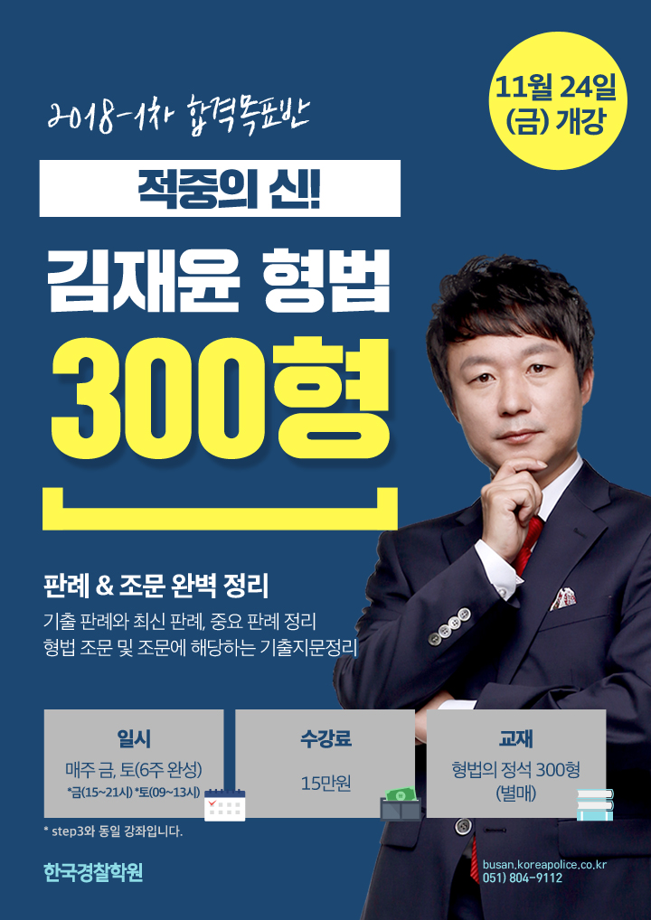 글제목 :      [2018-1차대비] 적중의 신! 김재윤 형법 300형 특강