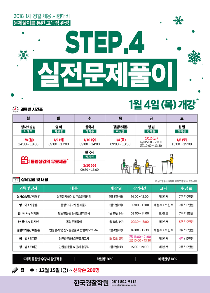 글제목 :      [2018-1차] step4. 실전모의고사형 문제풀이 1월 4일 (목) 개강!