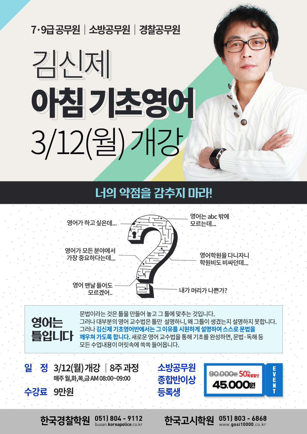 글제목 :      [영어특강] 김신제 아침 기초영어 3/12(월) 개강