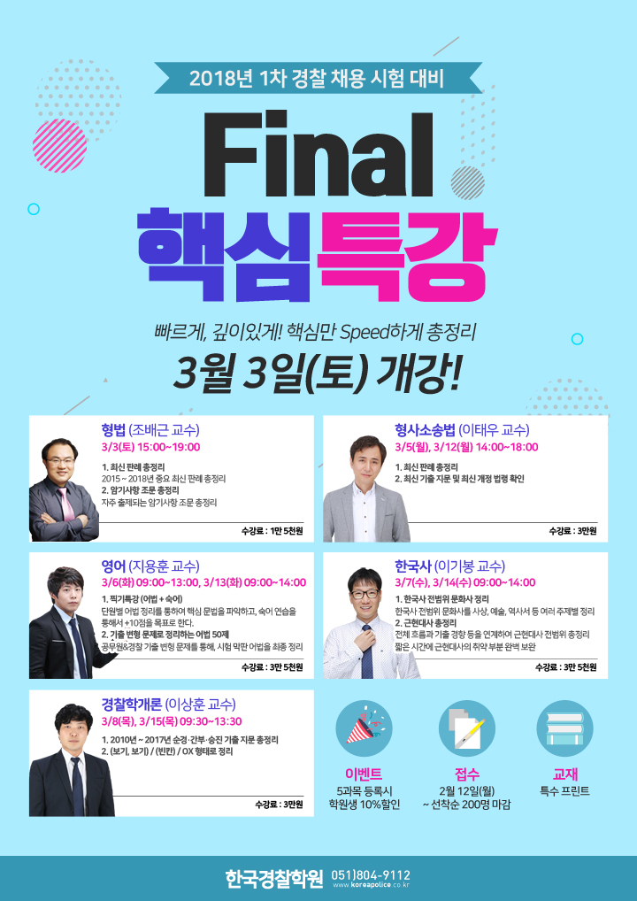 글제목 :      [특강] 2018-1차대비 Final 핵심 특강 3/3 (토) 개강!