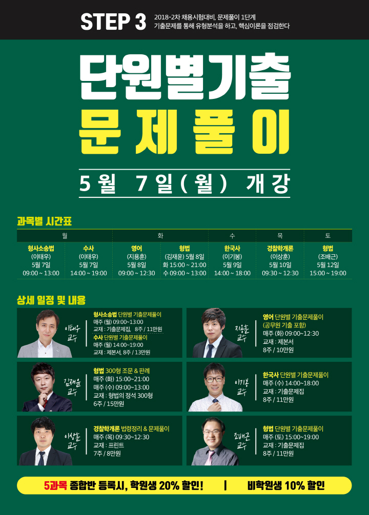 글제목 :      [2018-2차] step3 단원별 기출 문제풀이 5월 7일 (월) 개강!