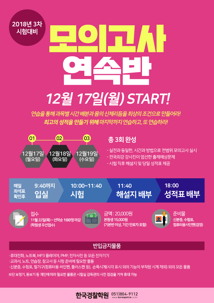 [특강] 2018-3차대비 모의고사연속반 12/17(월) START!
